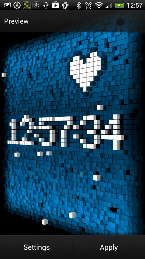Requisitos: Android 4.0 + Visão geral: Cube Cidade 3D Live Wallpaper [pausa] Cube Cidade 3D Live Wallpaper Veja como centenas de pequenos cubos interativos flutuando em sua tela inicial, formando formas , um relógio digitale móveis de lugar para lugar. uma ¢ OpenGL em tempo real live wallpaper? um ¢ 2000 + cubos 3D que respondem ao toque? uma ¢?relógio Digital à ¢ temas de cor diferente? à ¢ cores individuais? Tags: cubos, papel de parede ao vivo, OpenGL, interativo, 3D, papel de parede